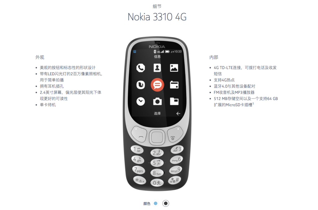 诺基亚 3310 4G 版现身官网,搭载 YunOS 可以开热点