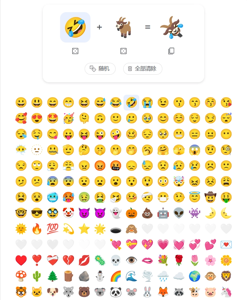 的功用,能够让两个不同的 emoji 表情组合成一个新的表情。现在,Google 把这个功用移植到了网页端,其他渠道用户也能够尝试用这个东西来组合出自己想要的表情了。