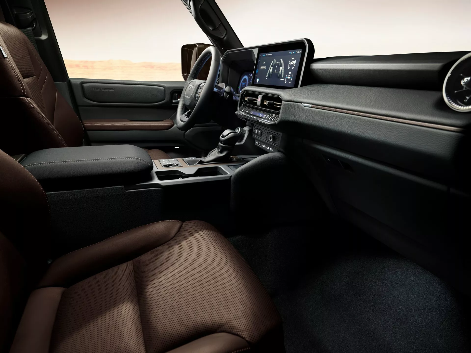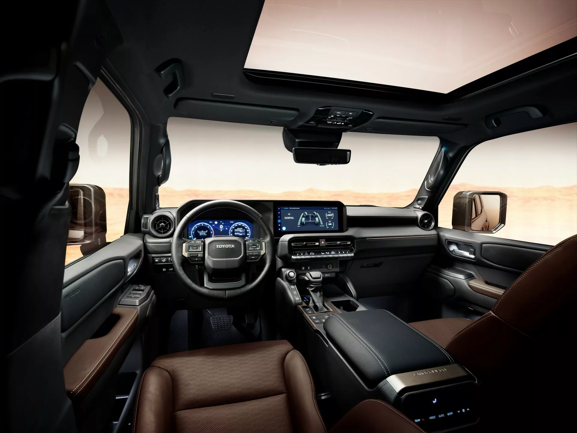 这款功用强大的越野车和 4×4 跟随了更大的 Land Cruiser 300 的脚步,并根据丰田的 GA-F 渠道。丰田指出,新车架的刚性比上一代车型的车架高出 50%,与新渠道相结合,可带来更好的越野功用并改进公路驾驭。